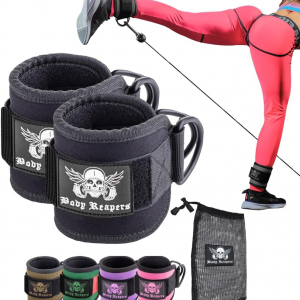 Gym Ankle Cuff Cable Attachment with Adjustable Velcro, Durable Double D-Rings & Cushioned Design for Glute, Leg & Lower Body Exercises, Comfortable Workout Straps & Ankle Cuff