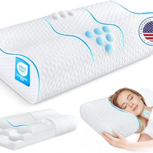 Cervical Neck Pillow for Pain Relief- Queen Size Adjustable Cooling Pillow for Sleeping, Memory Foam Pillows for Neck Shoulder, Ergonomic Contour Bed Pillow for Side, Stomach & Back Sleepers