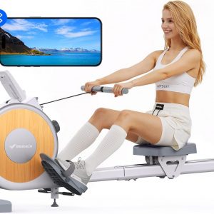 Rowing Machines for Home, Magnetic Rowing Machine with 16 Levels, Rower Machine of Quiet Resistance, Dual Slide Rail with Max 350lbs Weight Capacity, App Compatible