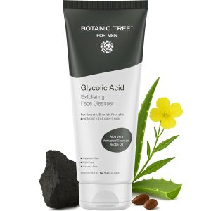 Botanic Tree Glycolic Acid Face Wash for Men – Facial Cleanser, Scrub – 10% Glycolic Acid with Activated Charcoal – 6 fl oz