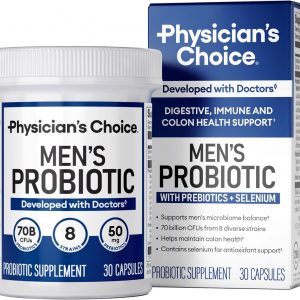 Physician’s Choice Probiotics for Men – 70 Billion CFU – 8 Strains – w/Selenium & Organic Prebiotics – Supports Digestive Health, Microbiome, Colon, & Immune Health – Advanced Men’s Probiotic – 30ct