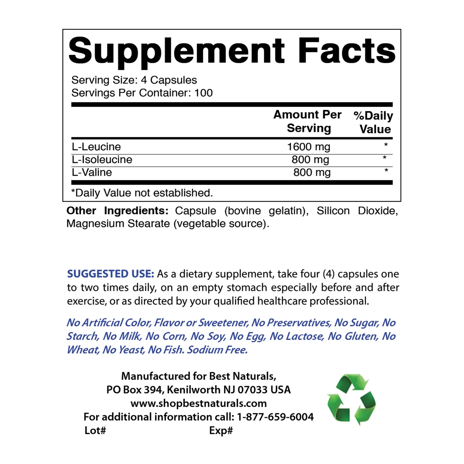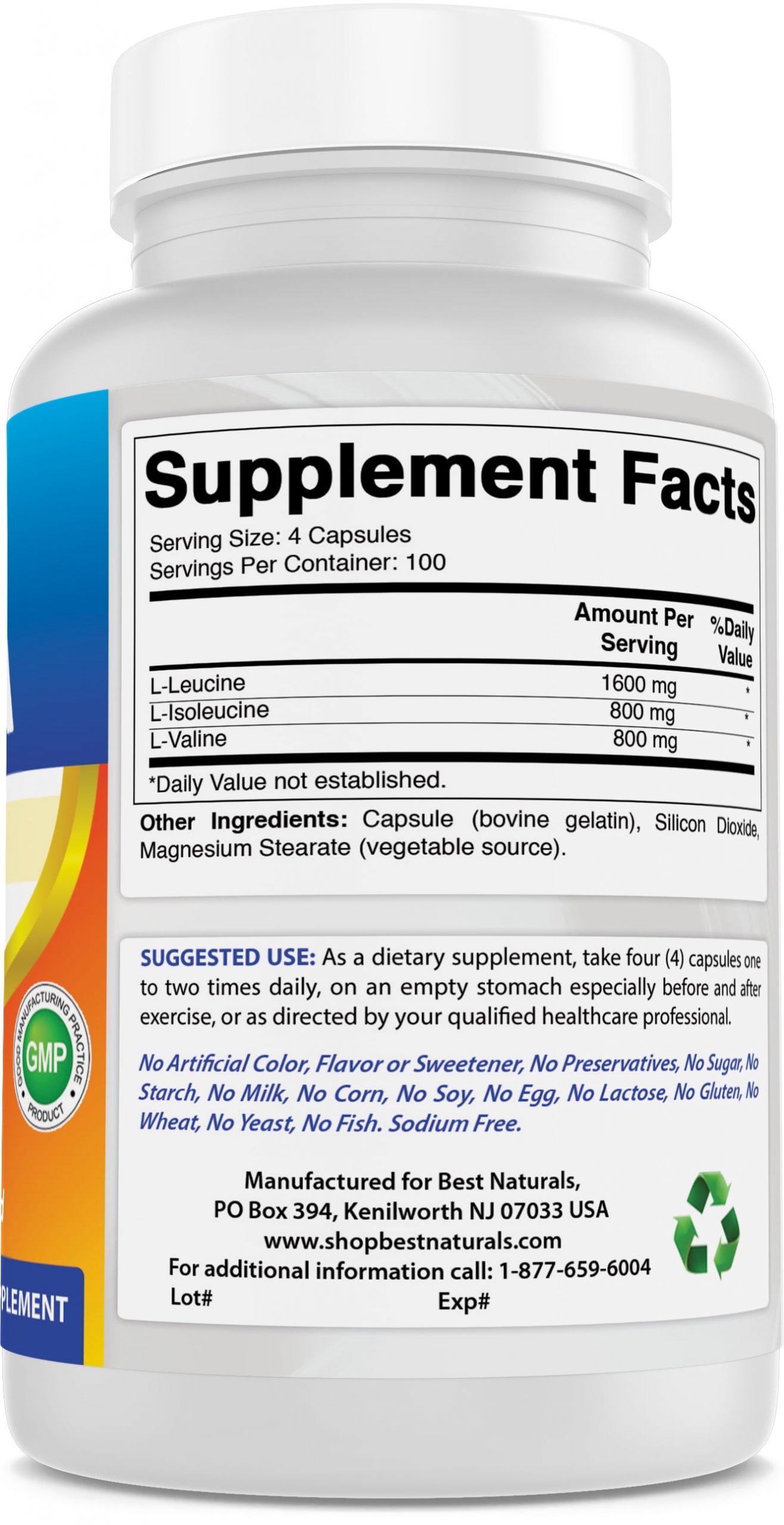 - PROVEN FORMULA FOR OPTIMUM EFFECTIVENESS: Best Naturals Branched Chain Amino Acid (BCAA) capsules provide l-leucine, l-isoleucine, and l-valine, which studies show to be the most effective formulation.
