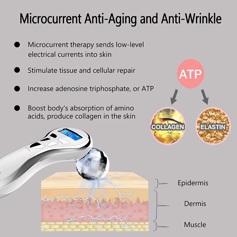 Micro Current Therapy: There are 5 modes micro current intensity. During working this face massage roller will release gentle microcurrent to stimulate ATP production which energizes the facial muscles. You can feel light tingling sensation, that means, microcurrent has been released to your body. It truly improves facial contour, facial tone, reduce fine lines and wrinkles. It effectively reduces the dark circles, puffiness and wrinkles during massaging chin, cheeks, forehead and lips etc.