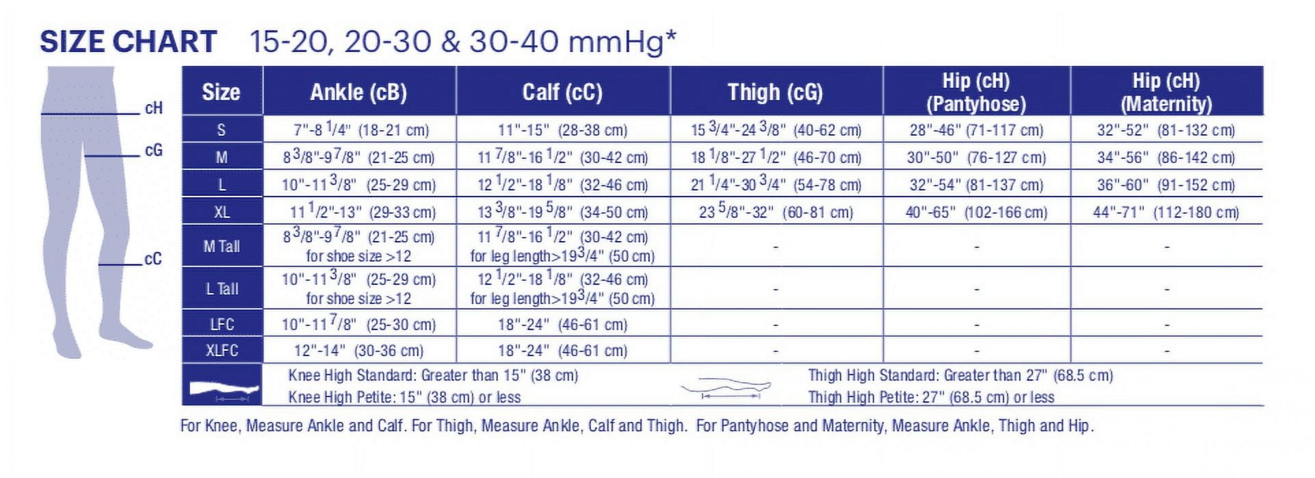 - offer a good fit and maintain the pressure profile across the extensive size range found in the size chart
