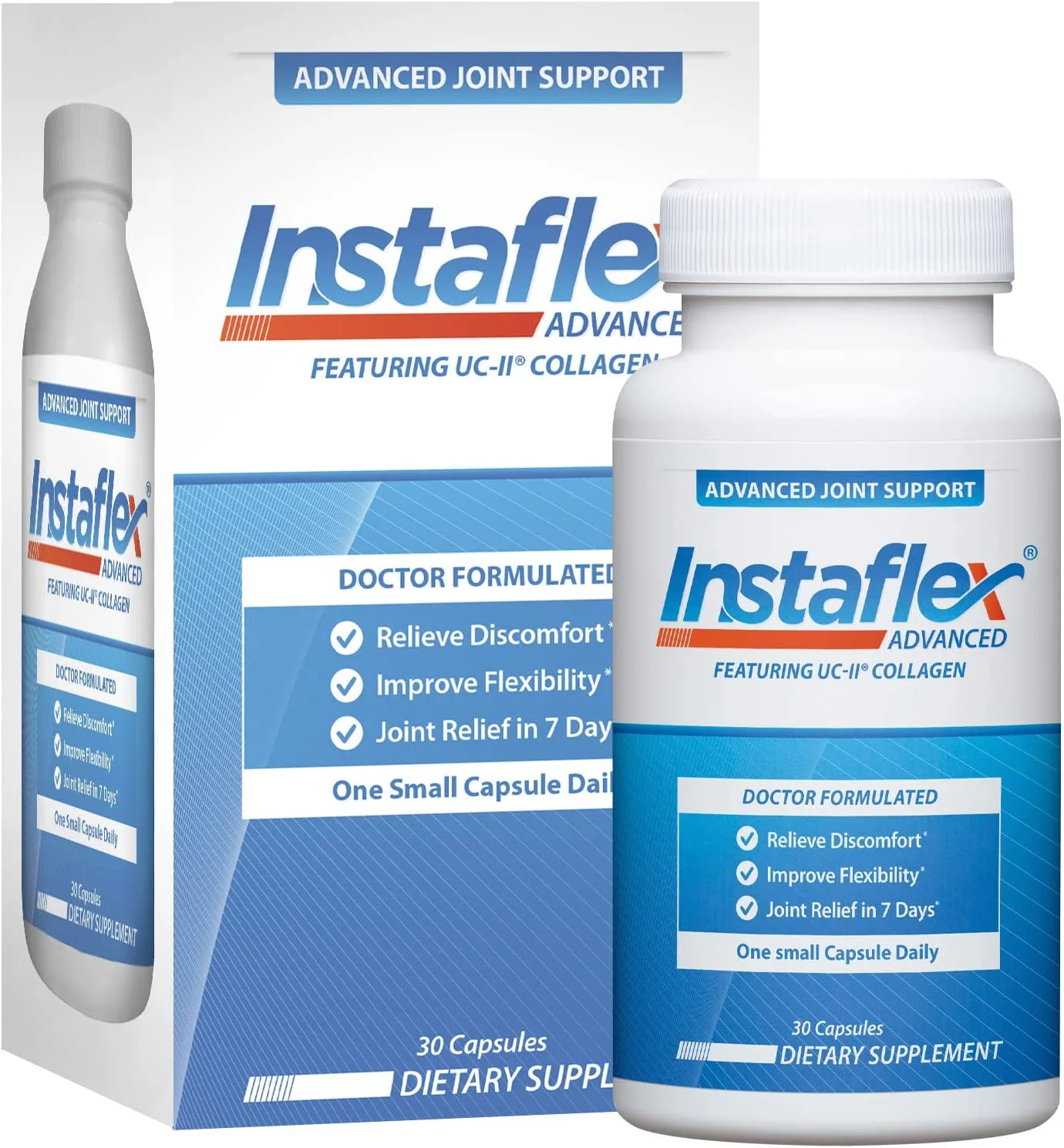 • Instaflex Advanced is made with potent, ultra-premium ingredients like UC-II Collagen, which is twice as effective as glucosamine plus chondroitin at reducing discomfort during daily activities