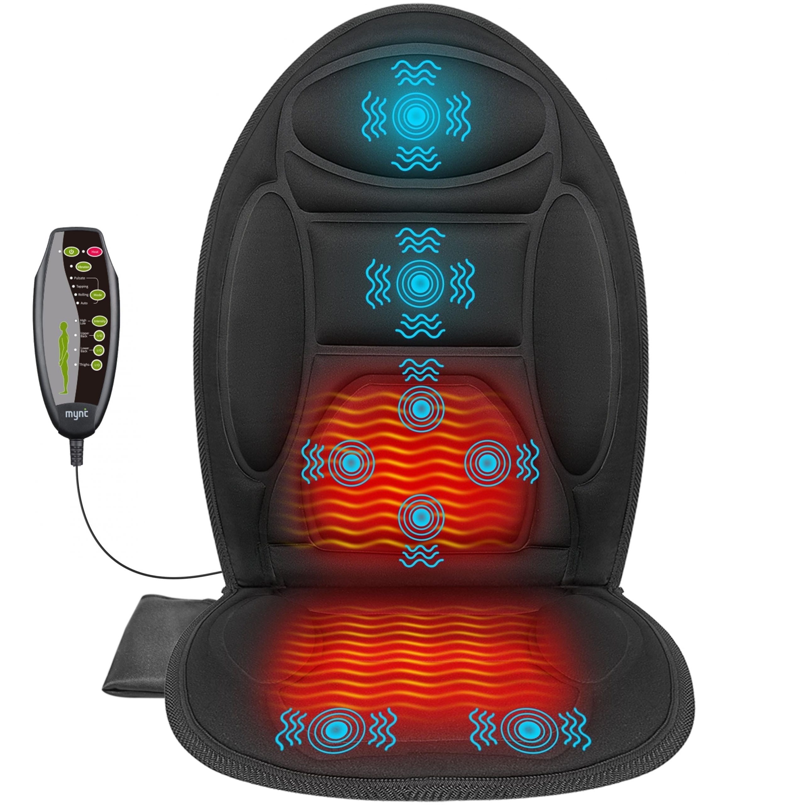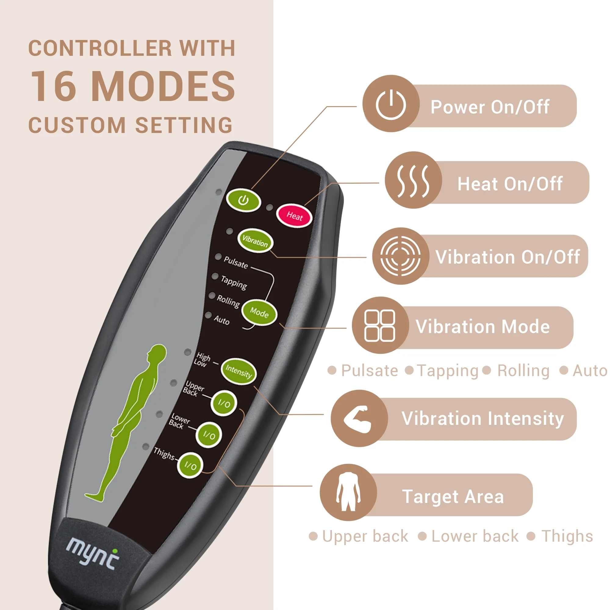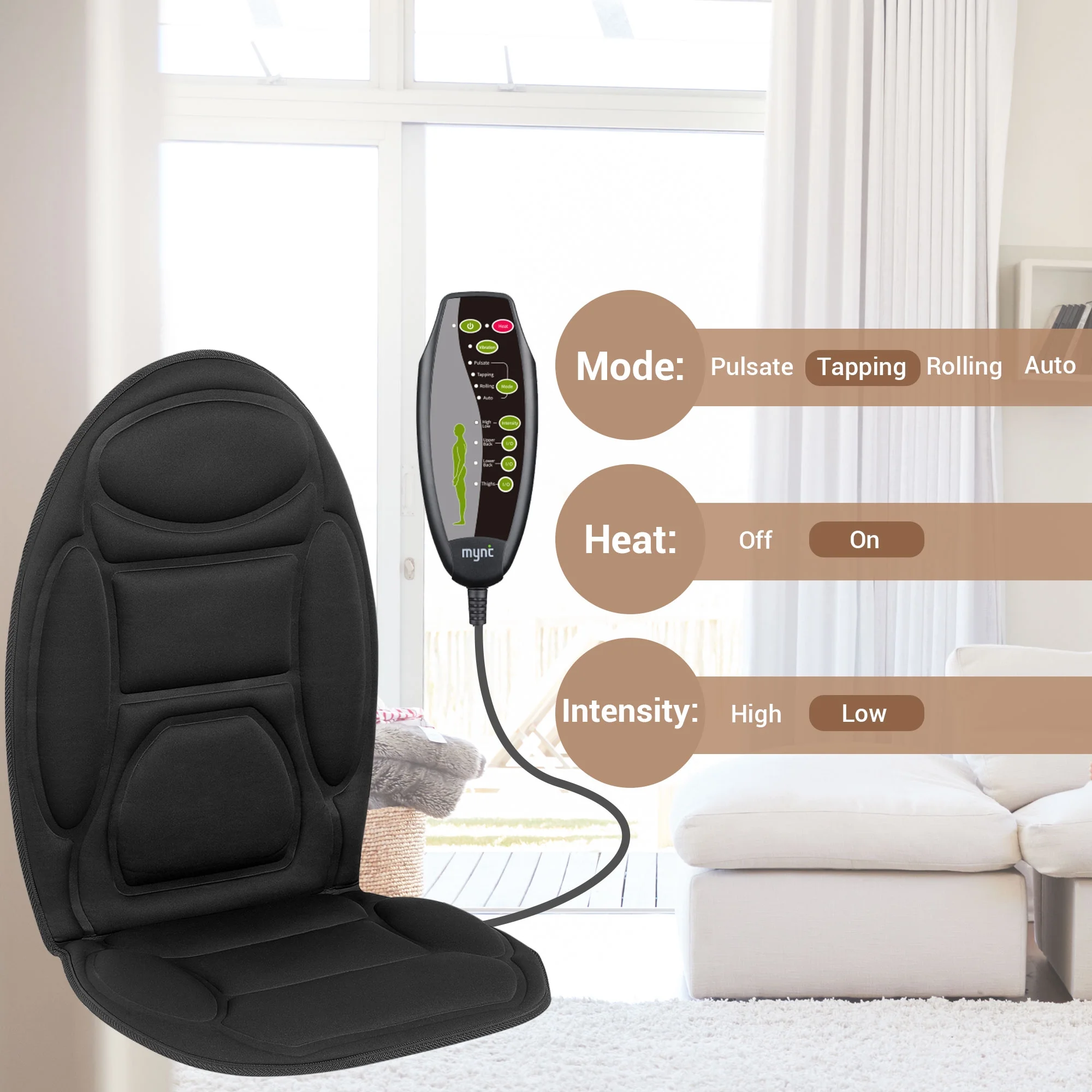 Enjoy a soothing massage experience with the Mynt Massage Seat Cushion. Featuring 8 vibration motors targeting your upper back, lower back, and thighs, this back massager offers 4 massage modes and 3 intensity levels to relieve muscle tension and improve blood flow. The lightweight and foldable design with rear straps allows for easy attachment to any chair, while the overheating protection and auto shut-off timer provide added safety and convenience. Backed by a 24-month manufacturing warranty, this massage cushion is the perfect addition to your home or office setup.