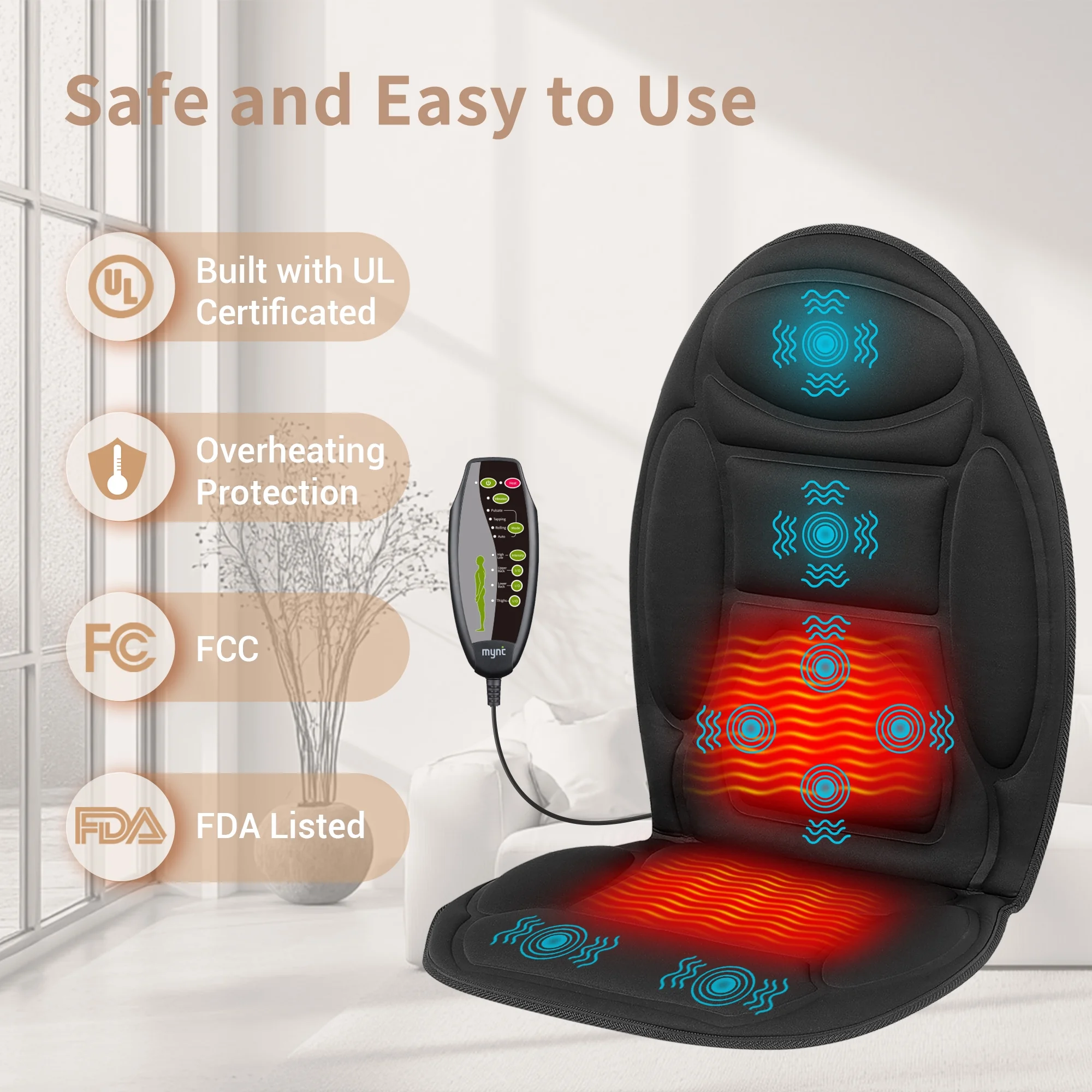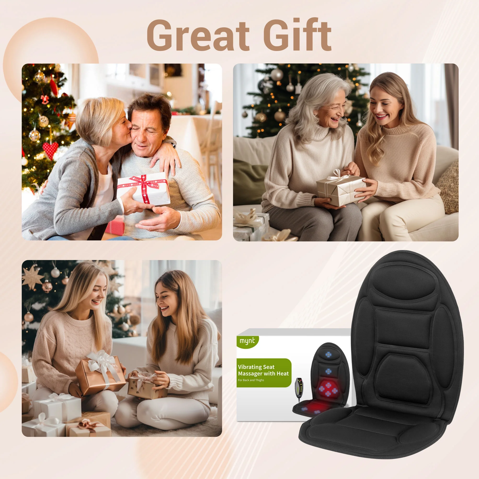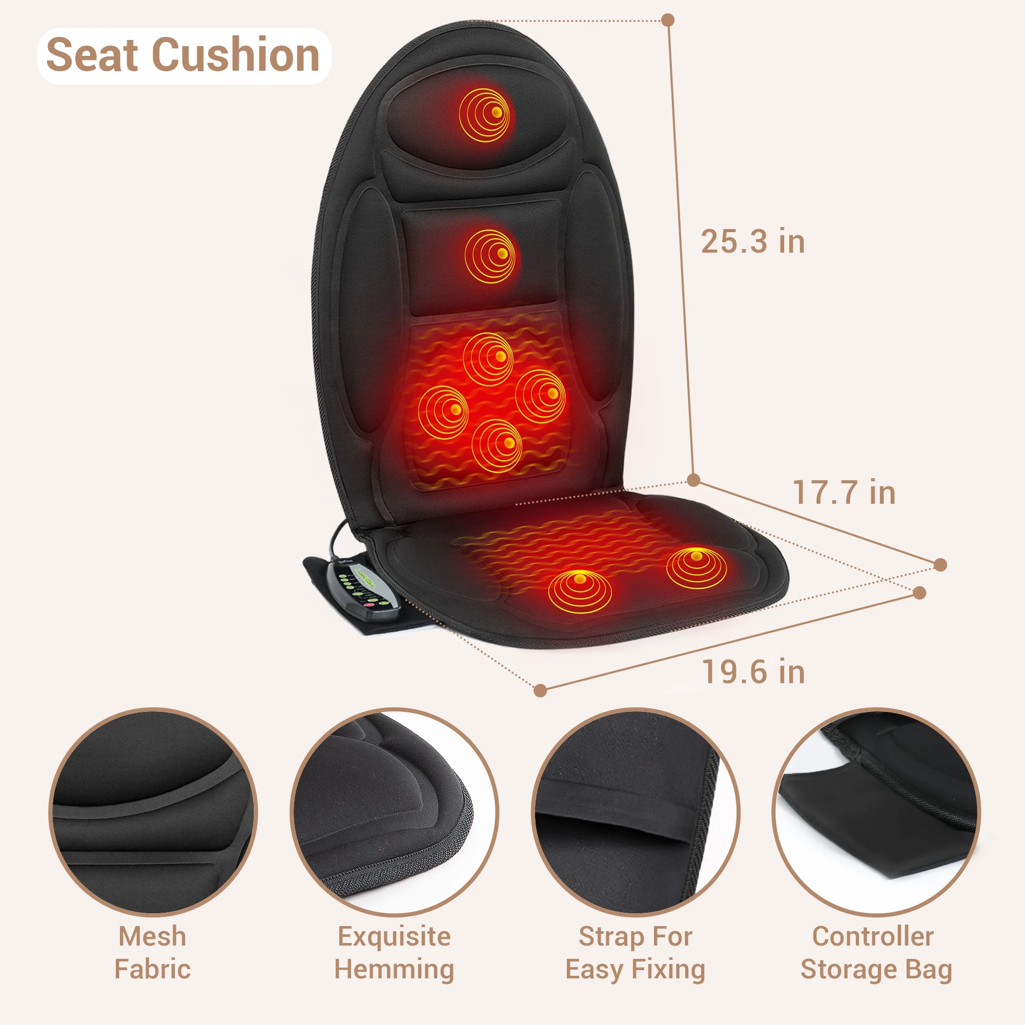 Back Massager Seat Cushion Massager with Heat, 8 Vibration Massage Nodes Massage Chair Pad for Home Office Chair