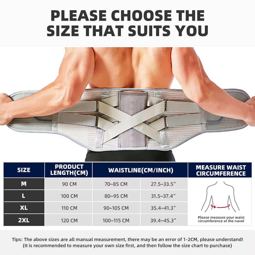 Strong support to prevent waist injuries: The lumbar support brace has a thickened and widened arc steel plate on the back, and two auxiliary steel plates, combined with 2 multi-pressurized straps, providing all-round support and protection for the waist to prevent injuries
