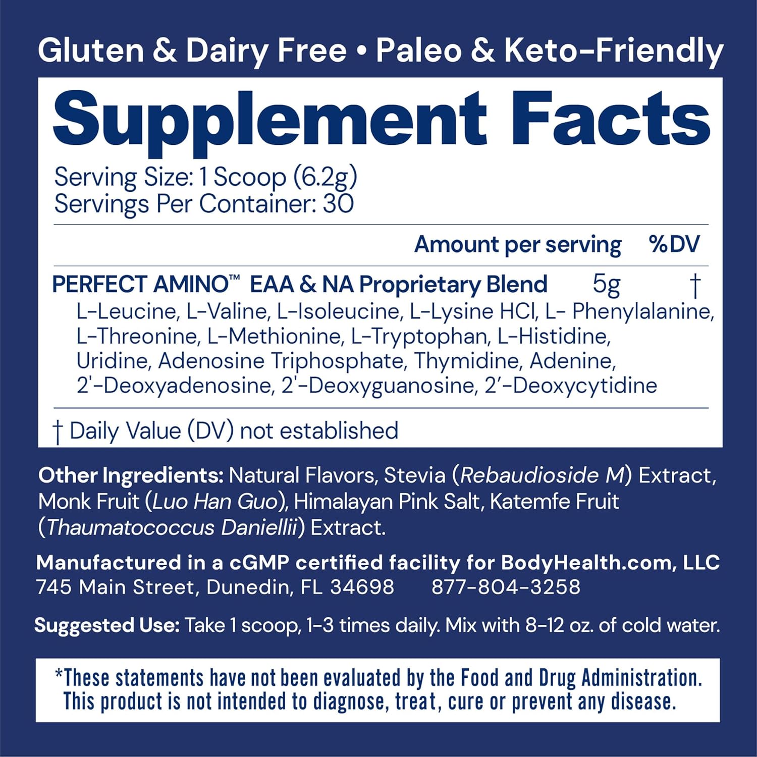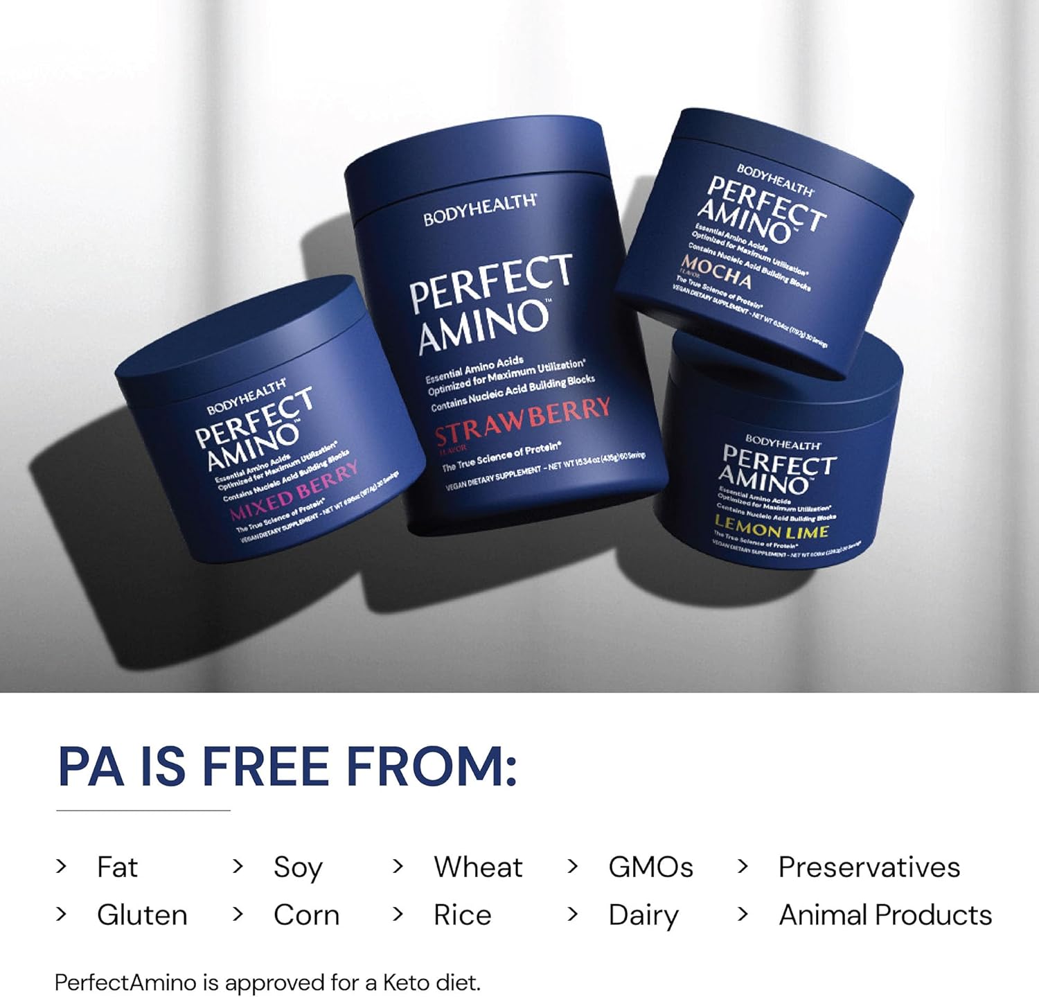 - WILL NOT BREAK A FAST. BCAAs amino acids are free from sugars, yeast, gluten, soy, corn, wheat, rice, and preservatives. Perfect Aminos is vegan sourced, keto, and produced in cGMP Certified facilities in the USA for assured quality and safety.
