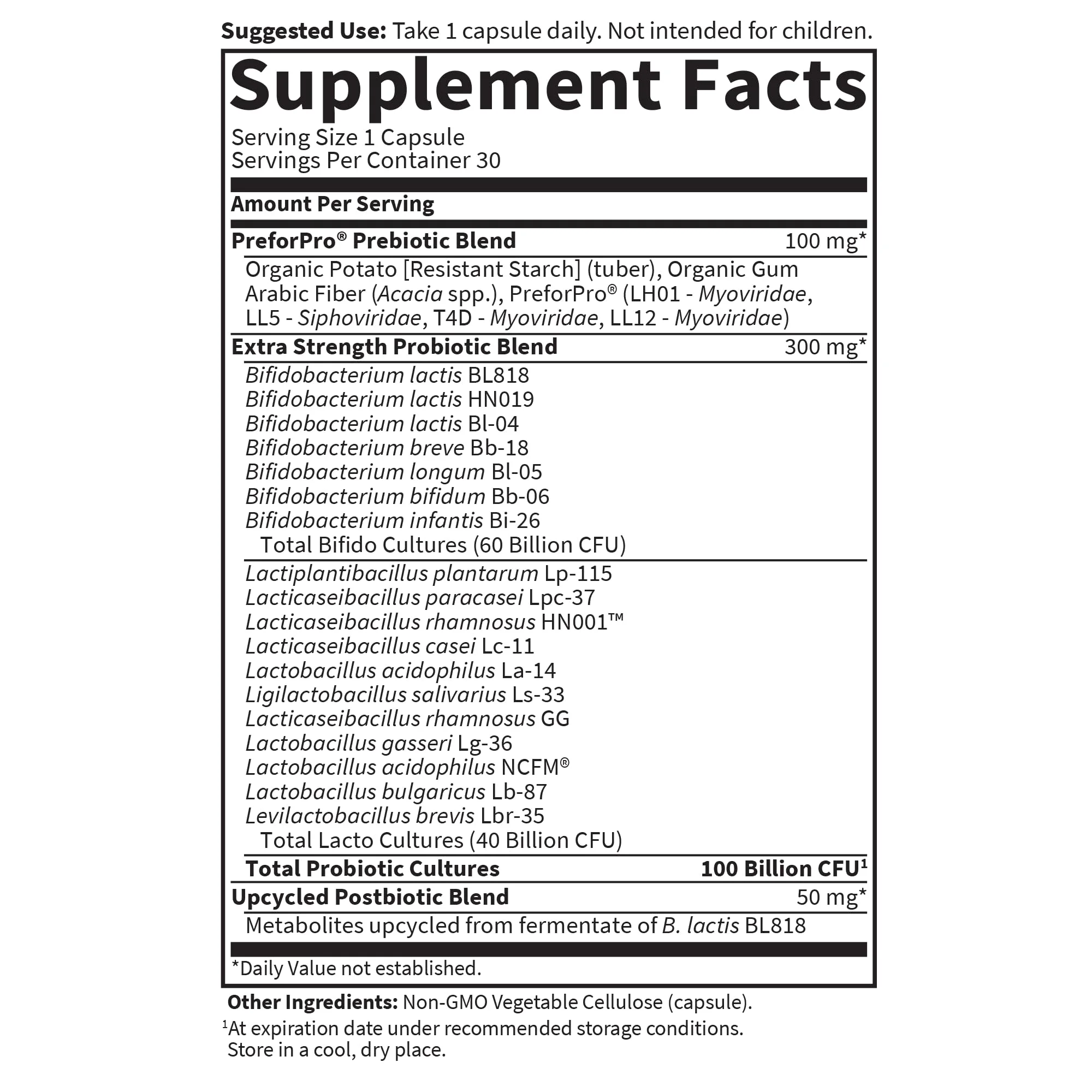 Meet the next generation of probiotics: innovative Clinically Proven prebiotics, live probiotic cultures and upcycled postbiotics—all in an easy to swallow, vegetarian capsule. We’ve taken these “Wholebiotics” (as we like to call them) to the next level by designing complete, triple action formulas. How? Prebiotics bring probiotics to life, probiotics are beneficial living bacteria, and postbiotics make probiotics more powerful. The end result is targeted formulas which provide digestive and immune support to meet your specific needs. Our shelf stable Extra Strength Probiotic provides 100 Billion CFU from 18 Probiotic Strains, including Clinically Studied HN019 and LP-115, shown to promote powerful digestive and immune system health. Our doctor formulated probiotic is also Third-Party Certified Non-GMO Project Verified and NSF Gluten Free. The brain behind our Dr. Formulated line is David Perlmutter, M.D., F.A.C.N. He is a leading expert on the human microbiome, America’s brain-health expert, six-time best-selling author, Board-Certified Neurologist and Fellow of the American College of Nutrition. .