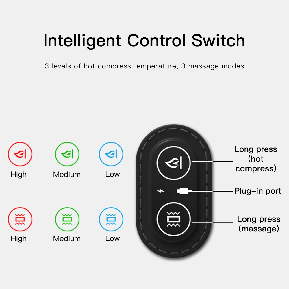 3.Three levels of constant temperature hot compress + three levels of vibration massage, promote blood circulation, reduce muscle fatigue, relieve shoulder and neck pain, and improve cervical spine problems.