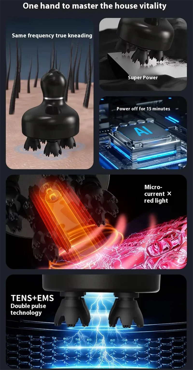 Electric Scalp Head Massager Red Light Therapy Antistress Relax Body Massage Remove Muscle Tension Tiredness Massageador Tool