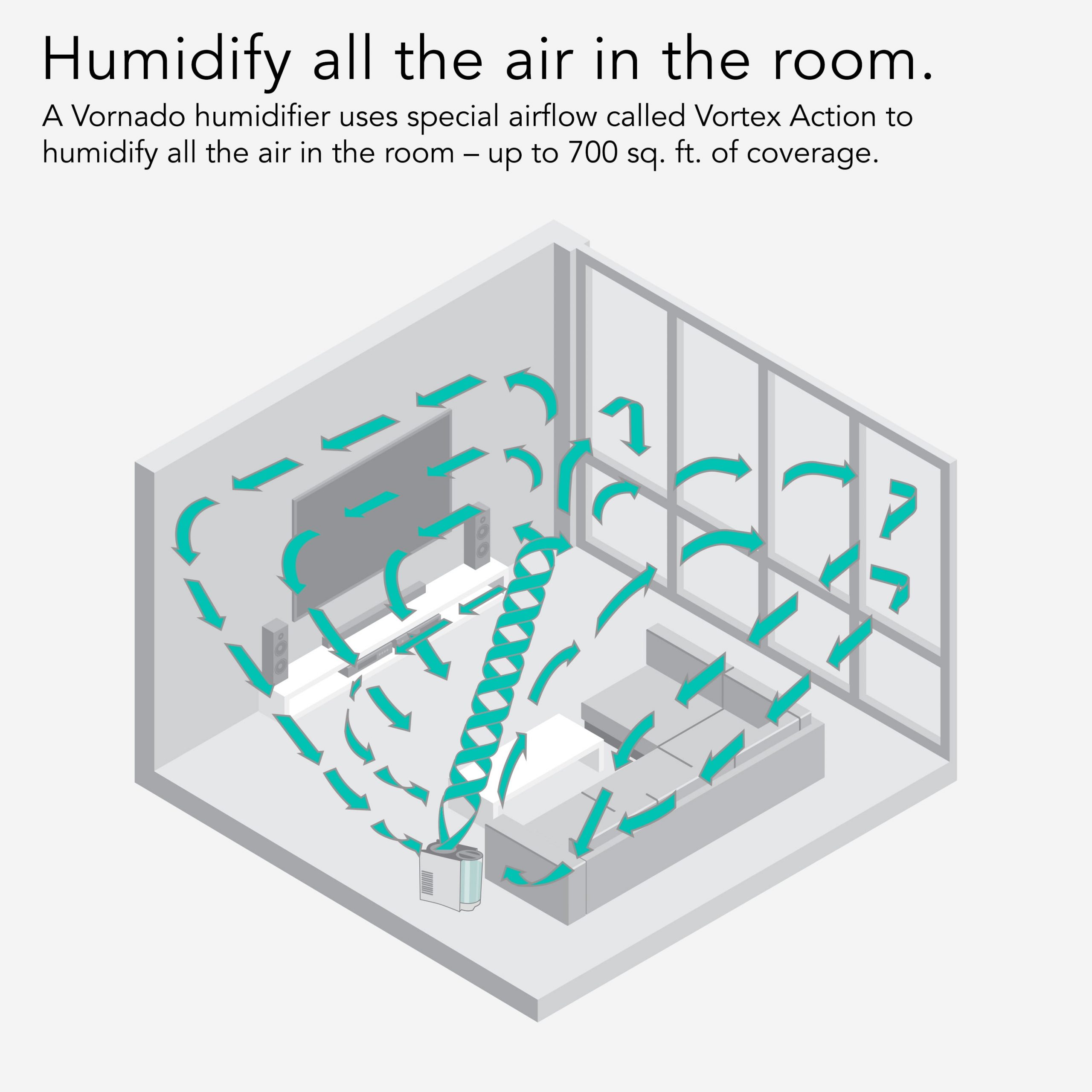 • Whole room evaporative humidification up to 750 square feet