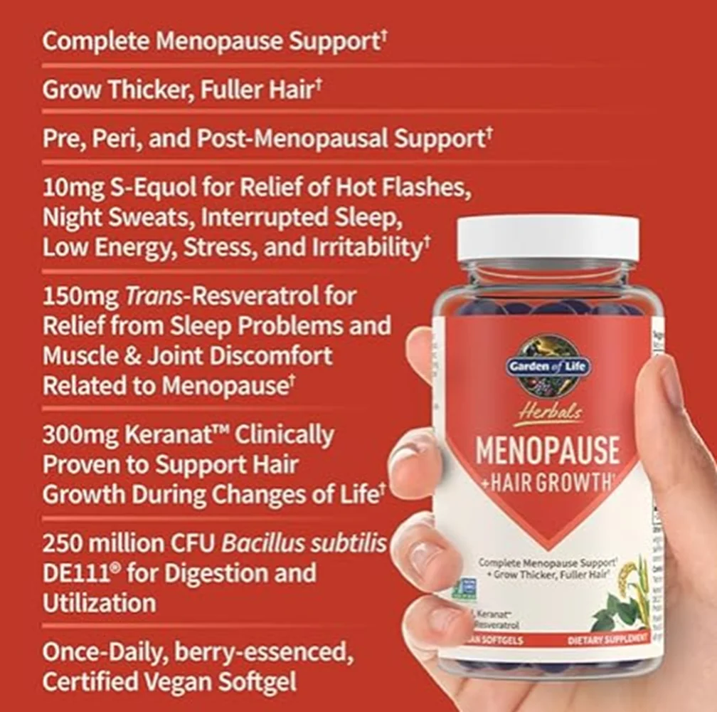- A unique formula to support women through pre, peri & post-menopause, while maintaining healthy hair growth
