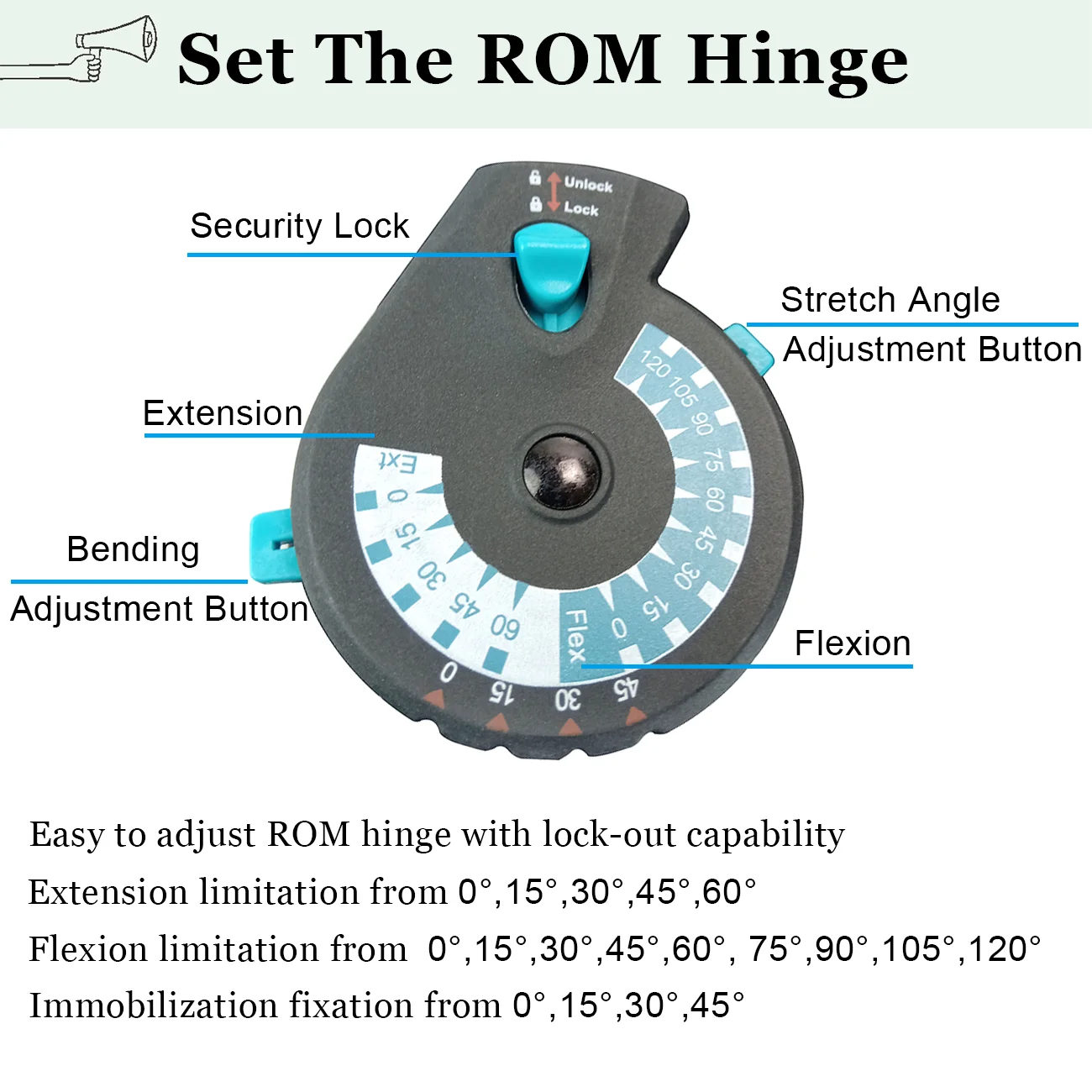 - TOOL-FREE DESIGN, and collateral bars prevent valgus and varus deformity. Easy to use ROM hinge with quick-adjusting flexion and extension stops to control and limit knee flexion and extension