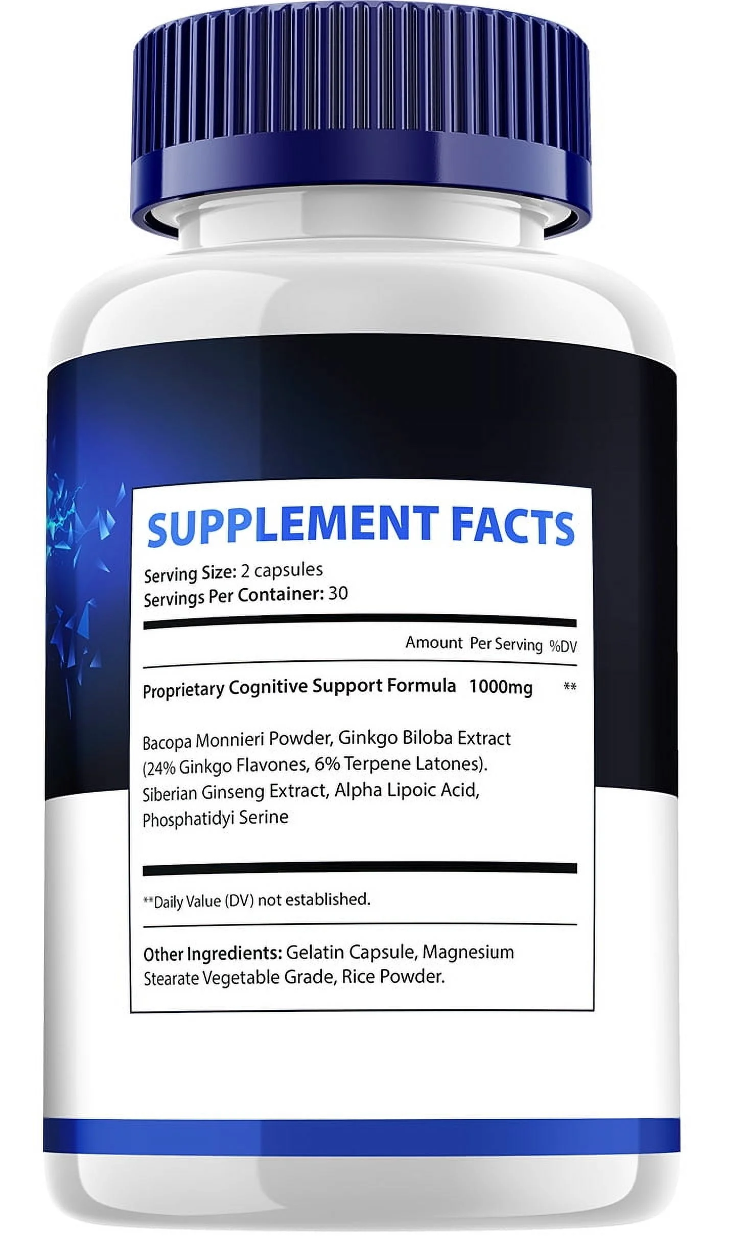 Bacopa Monnieri Powder, Ginkgo Biloba Extract (24% Gingko Flavones, 6% Terpene Latones). Siberian Ginseng Extract, Alpha Lipoic Acid, Phosphatidyi Serine/div>