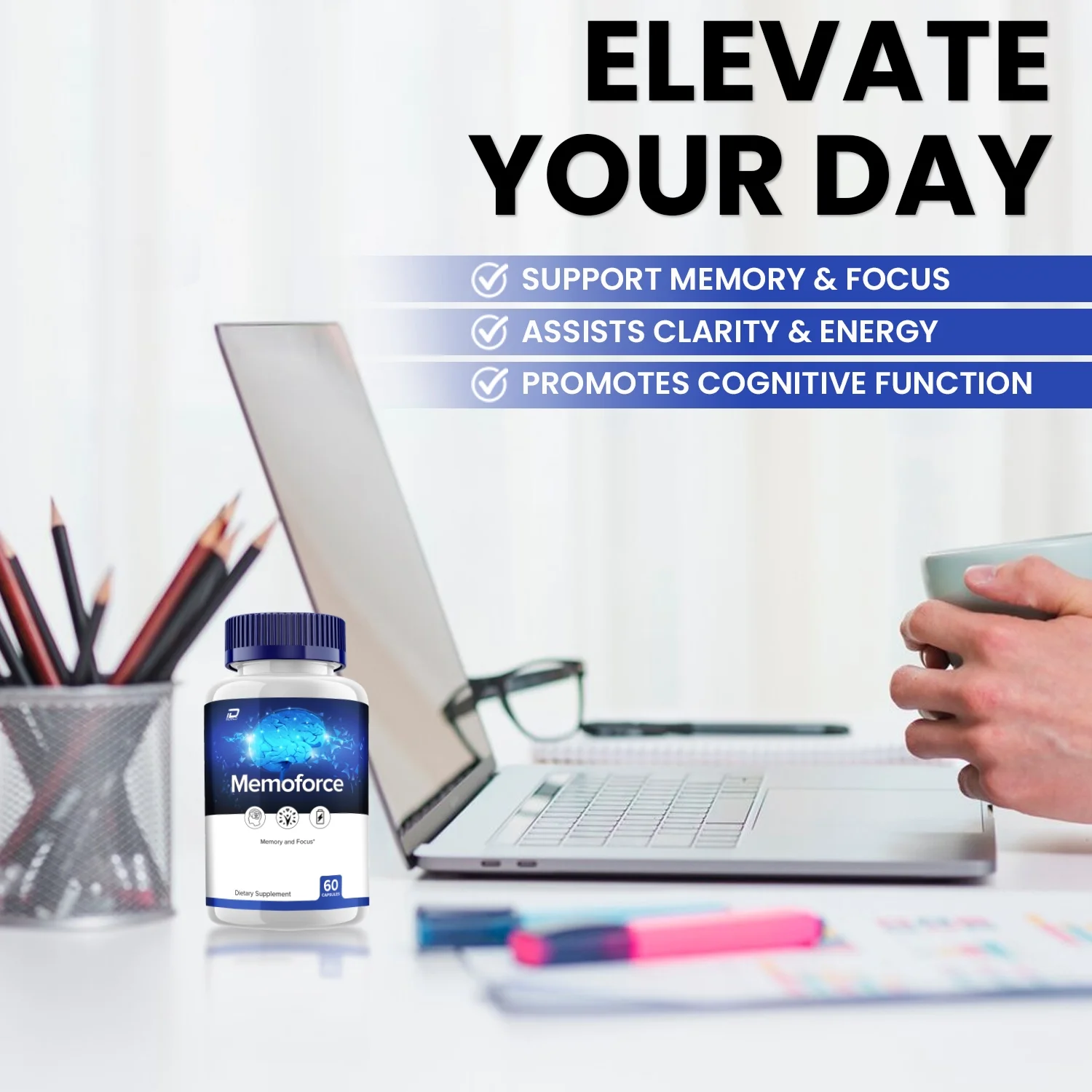 - MemoForce Enhance Brain: Incorporate MemoForce Capsules into your routine for optimal support of mental focus and alertness.