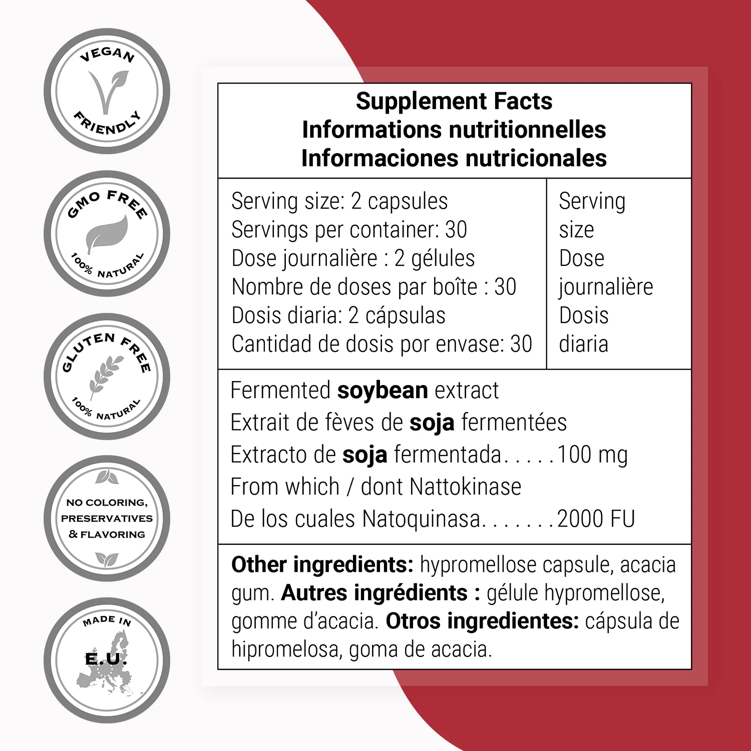 Nattokinase, D-Alpha-Tocopherol | Other ingredients: soy lecithin, beeswax, white rice bran oil | **Warning: Contains soya**/div>