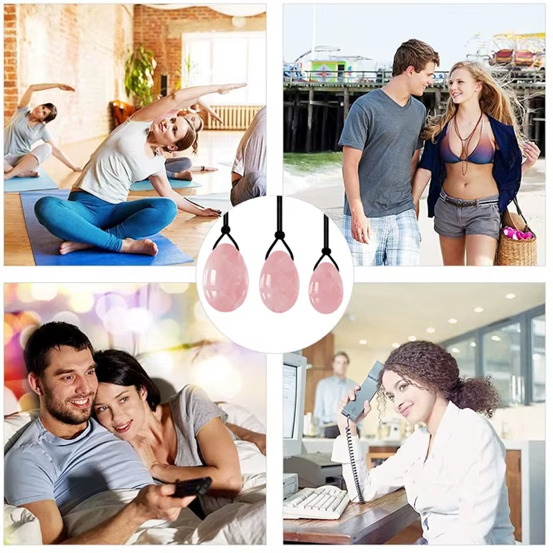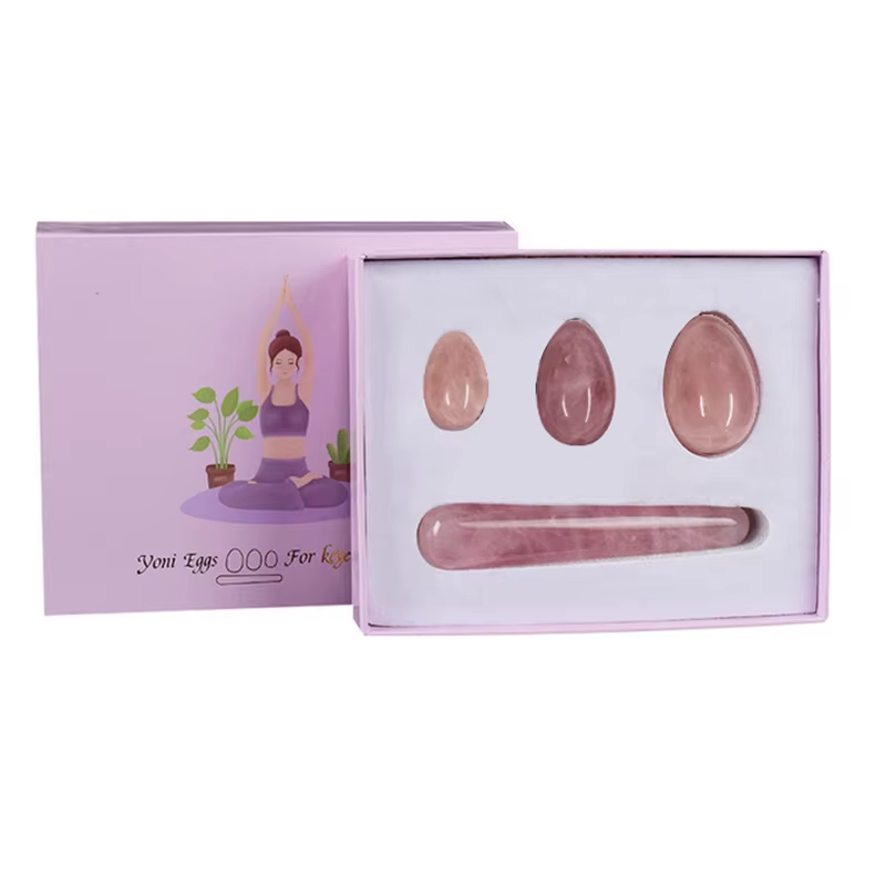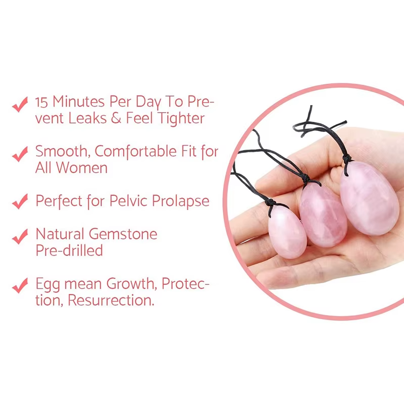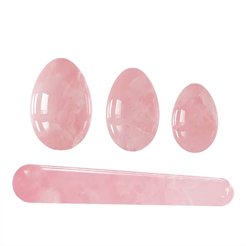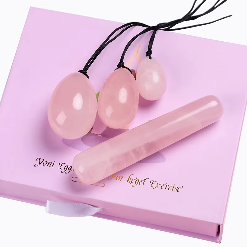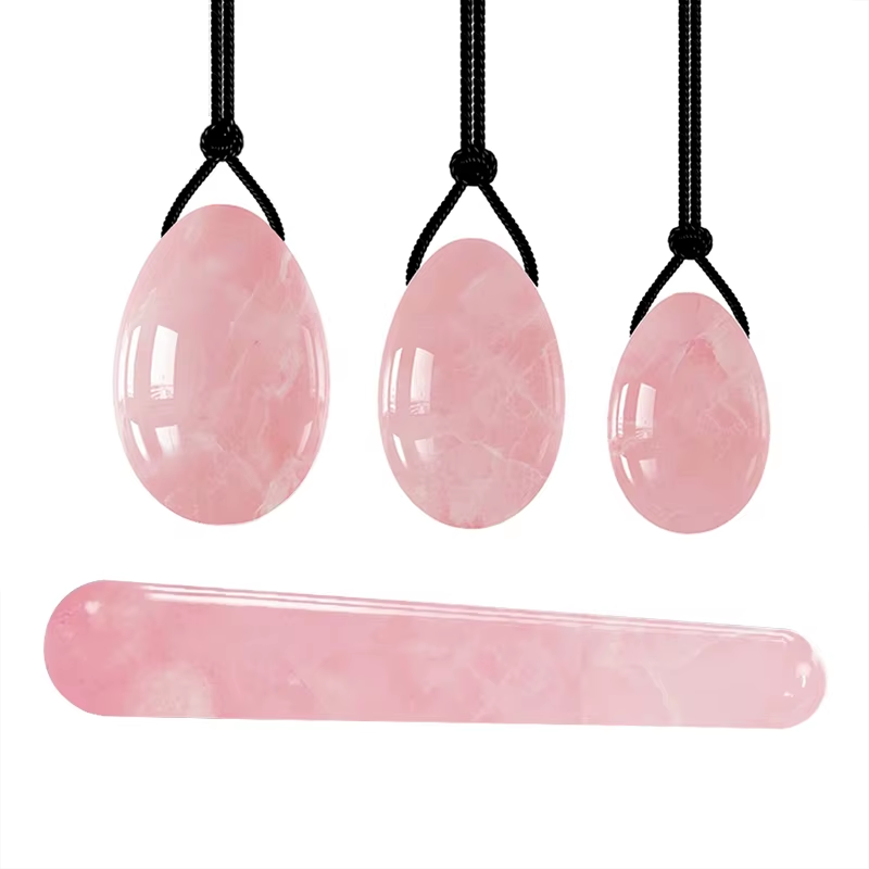 Natural Rose Quartz Yoni Egg Set Jade Egg Vaginal Muscle Firming Kegel Exercise Crystal Yoni Wand Feminine Hygiene Massage Stone