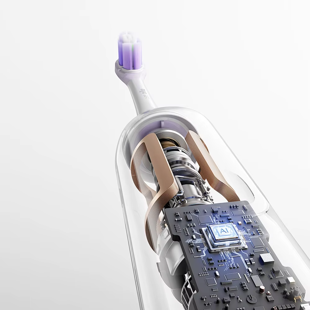 Built-in 6-axis motion sensor smartly recognizes tooth regions by detecting the angle and position changes of the toothbrush while brushing, providing timely feedback on brushing coverage*.