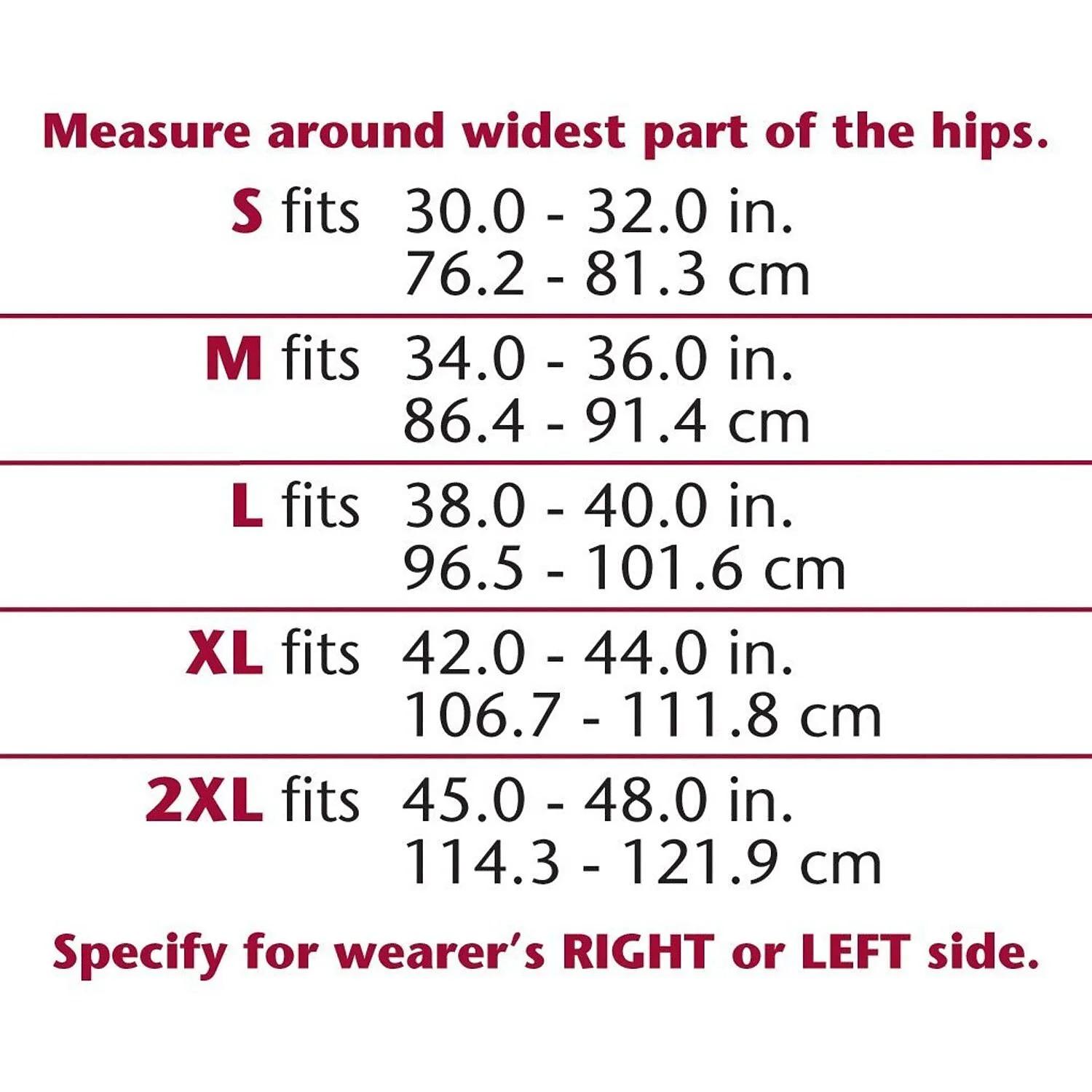 • Specify for wearer’s right or left side.