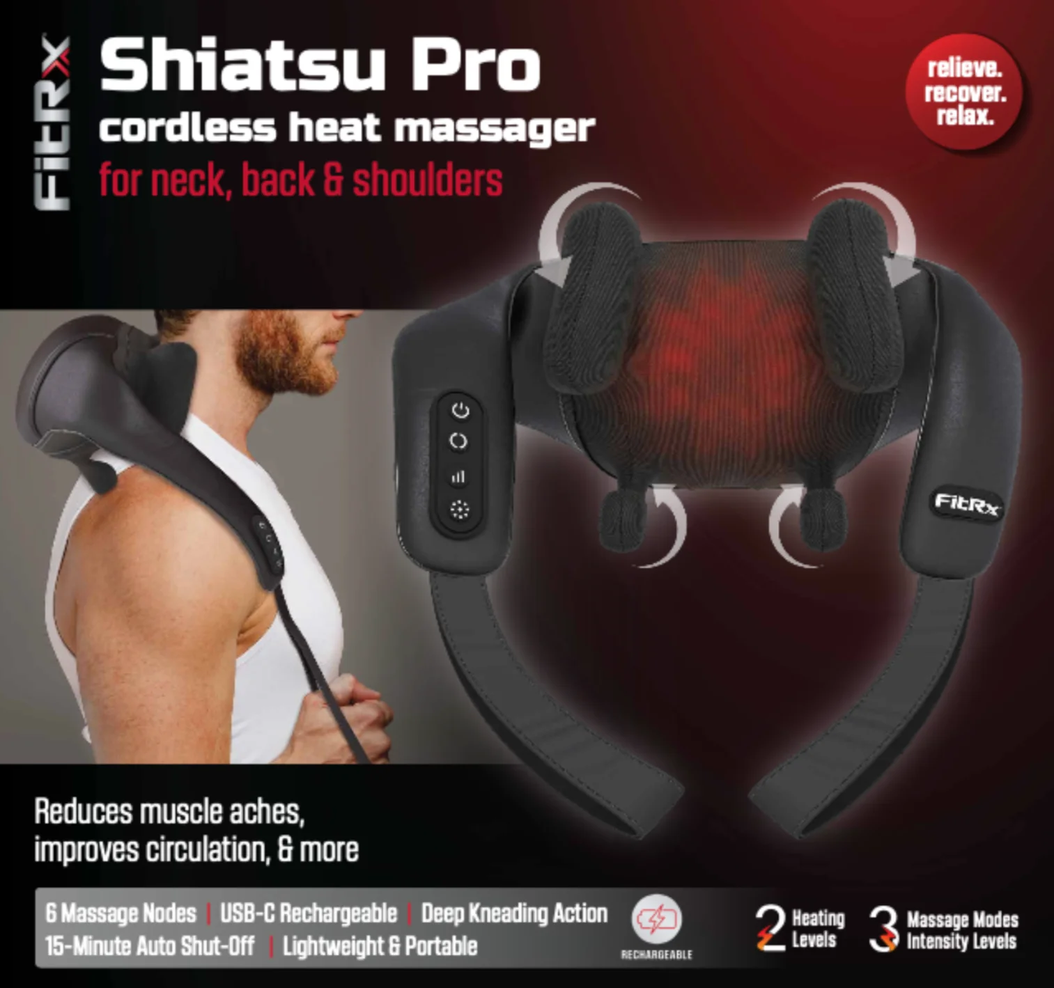 - FitRx Shiatsu Pro Shiatsu Back and Neck Massager, Cordless Heated Neck and Shoulder Massager