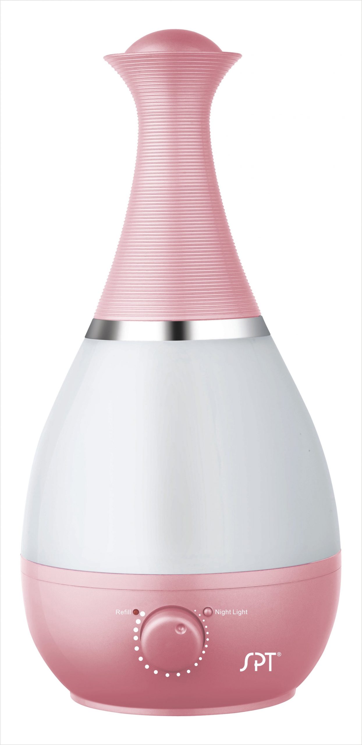 Elegant design and whisper quiet operation. Will help you breathe easier and sleep more comfortably. Provides year-round relief from the drying effects of AC and Heater. High humidity output with stepless control dial. Feature dry protection and water refill indicator.