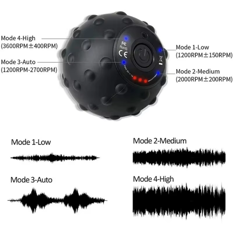 Vibrating Massage Ball 4Speed High-Intensity Fitness Yoga Massage Roller Relieving Muscle Tension Pain Pressure Massaging Balls