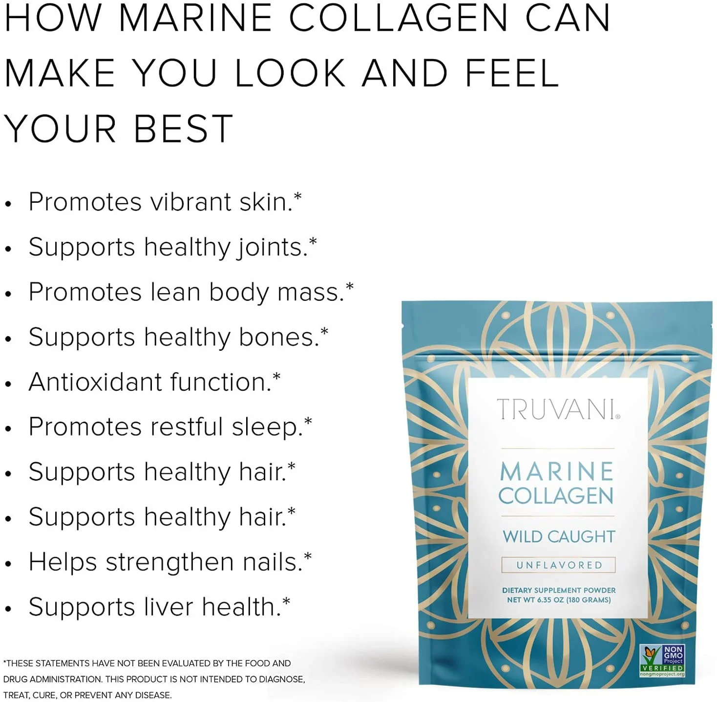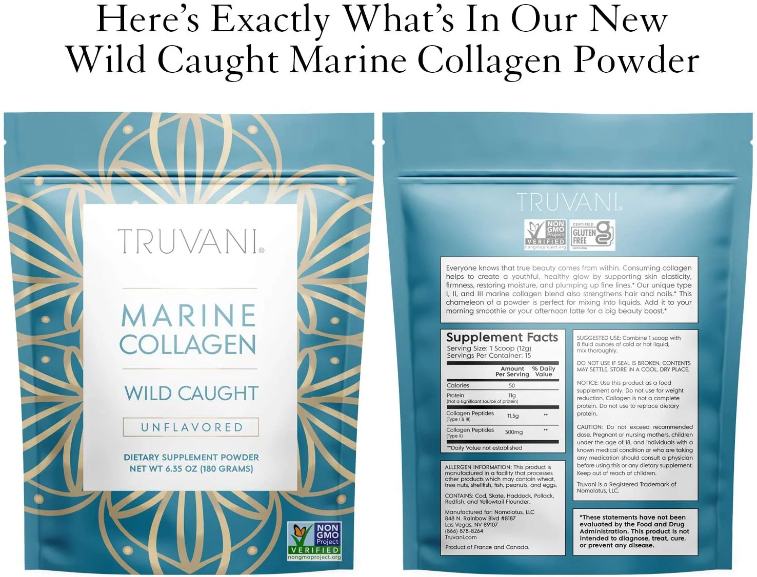 Truvani Wild Caught Unflavored Marine Collagen Powder, 6.35 Oz..;UPC:851856008036